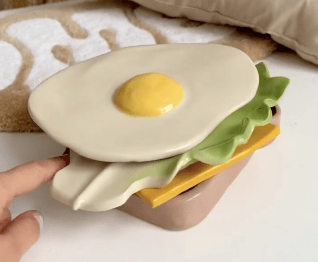 스튜디오에 도착하자마자 카메라를 켰다. 점토를 피자도우처럼 둥글게 펴고 식빵모양으로 잘라 테두리를 올렸다. 뚜껑도 만들었다. 점토를 계란후라이, 양상추, 치즈 모양으로 빚어 차곡차곡 올렸다. 초벌을 마치자 모양새가 그럴듯했다. 색을 입히고 재벌해서 마무리했다.